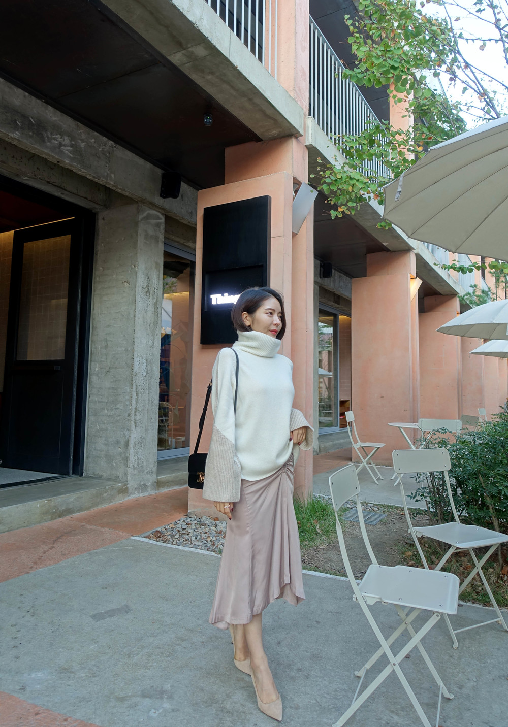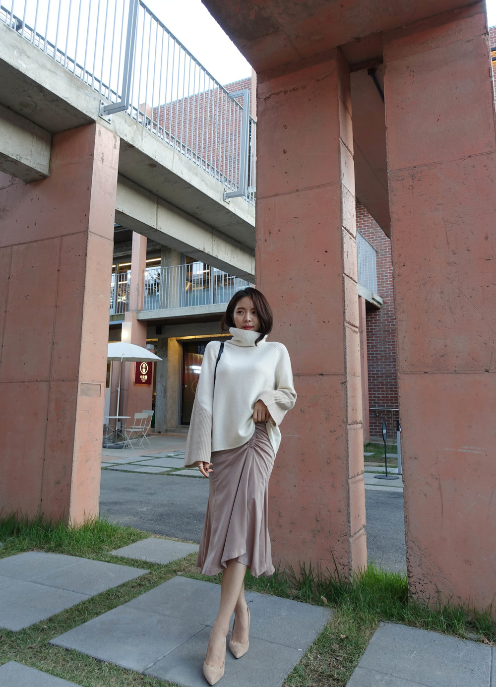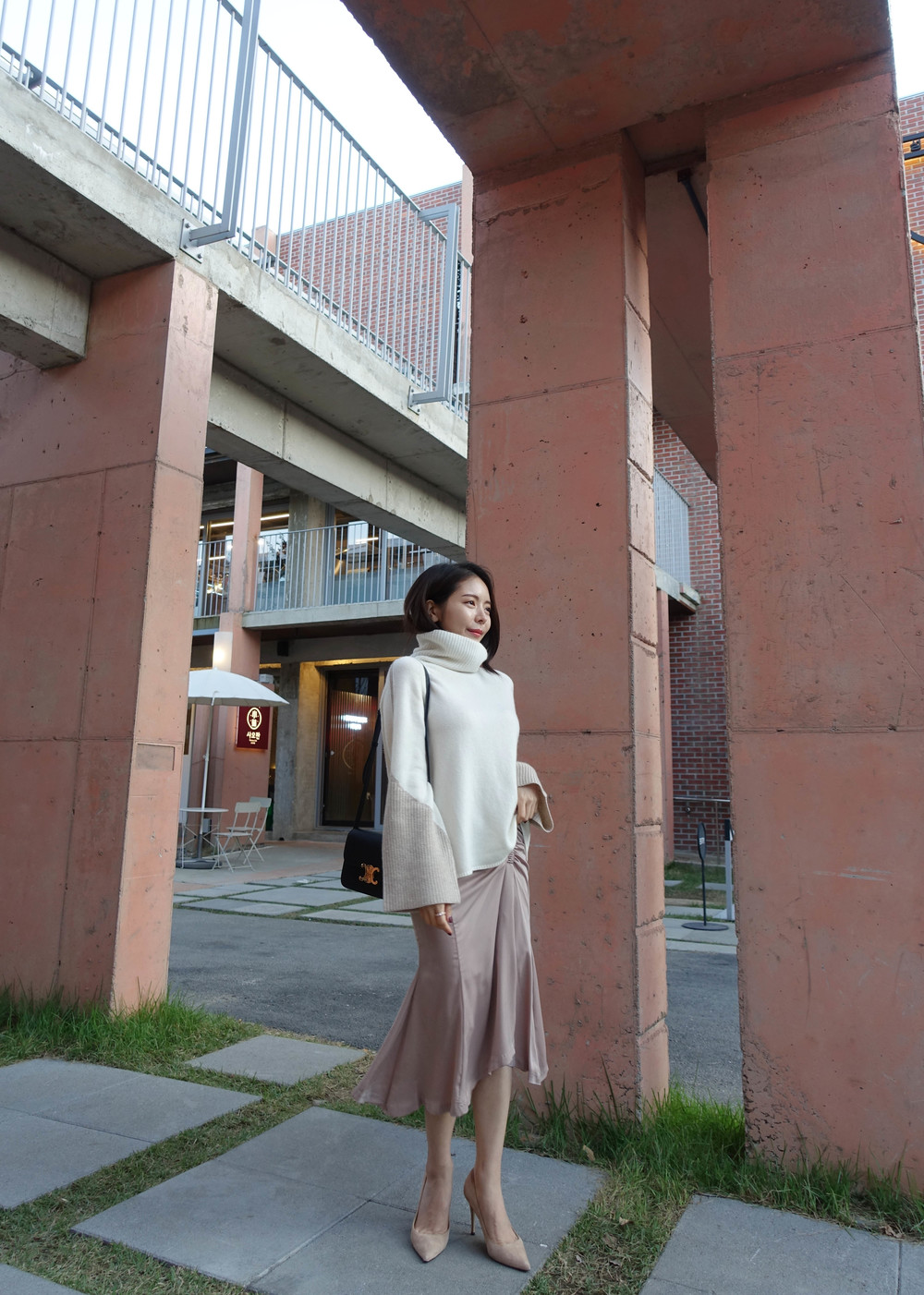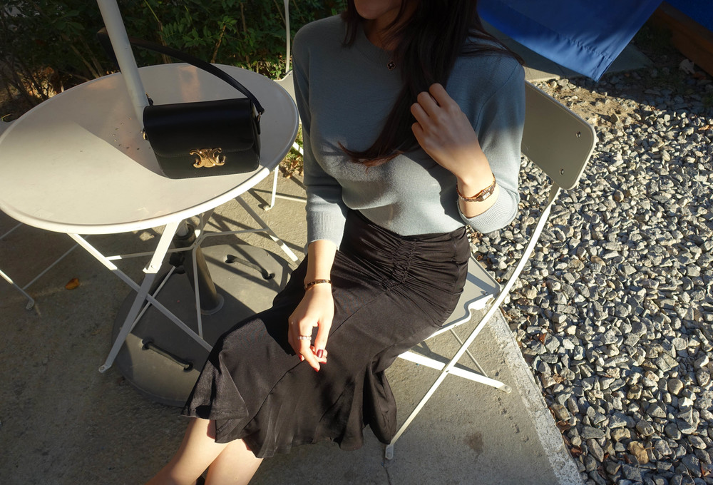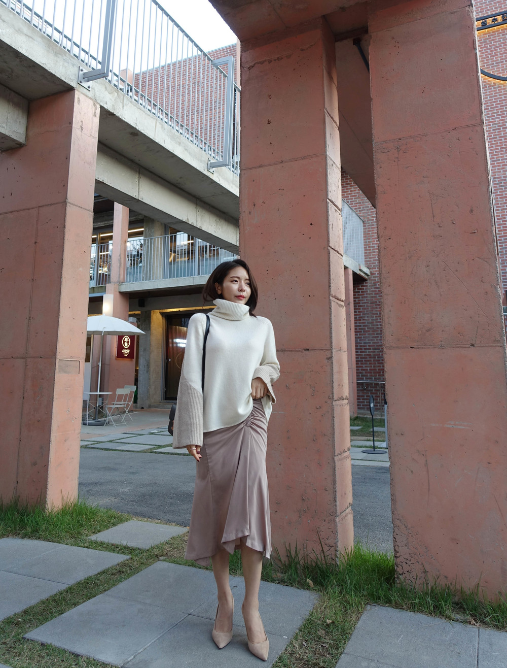 기본니트나 기본티에 코디해도 스커트의 포인트인 셔링으로 여성스러운 코디를 완성할 수 있어요