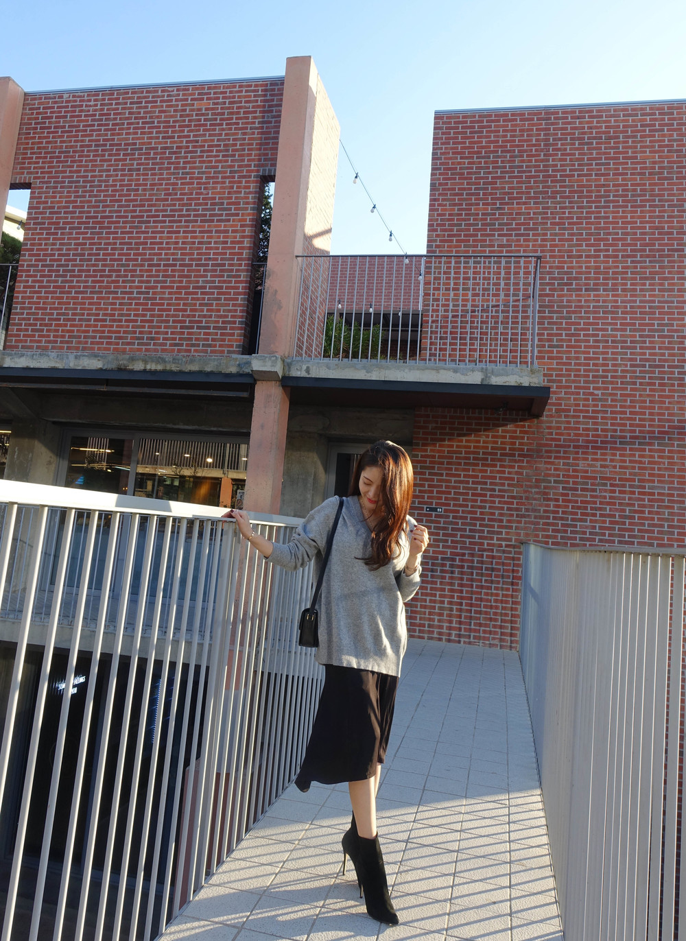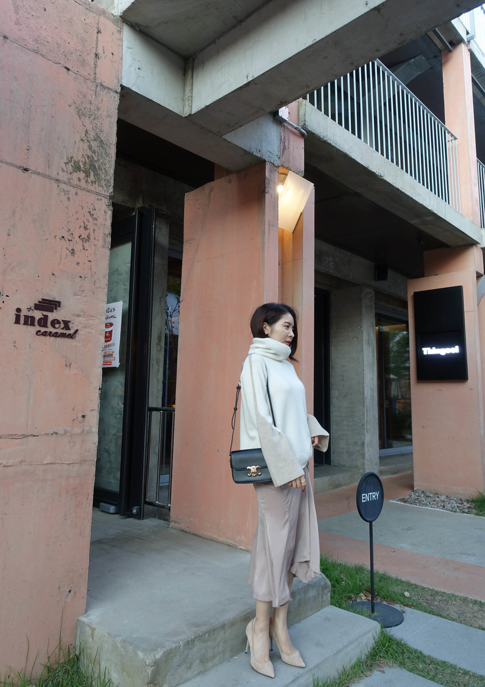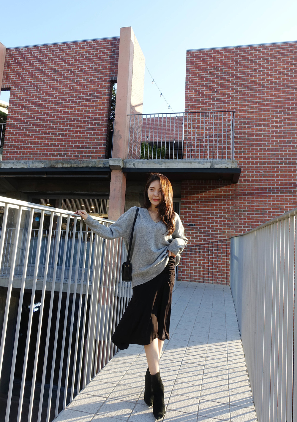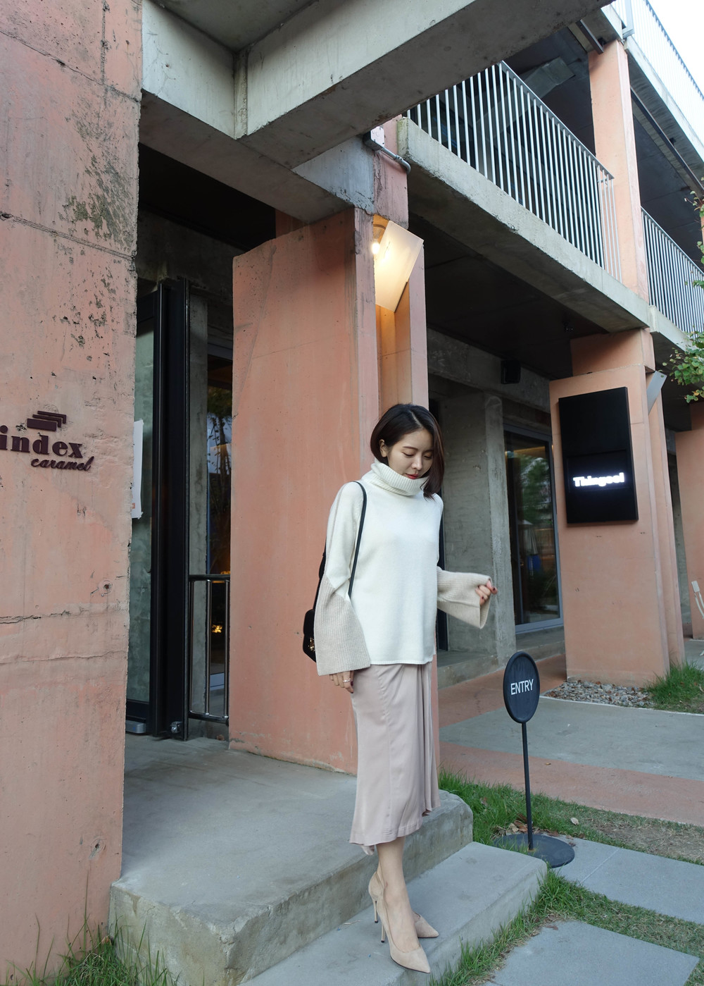 기본니트나 기본티에 코디해도 스커트의 포인트인 셔링으로 여성스러운 코디를 완성할 수 있어요