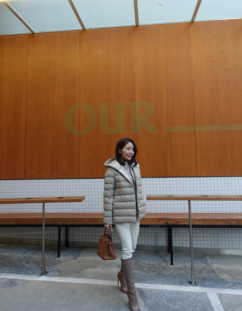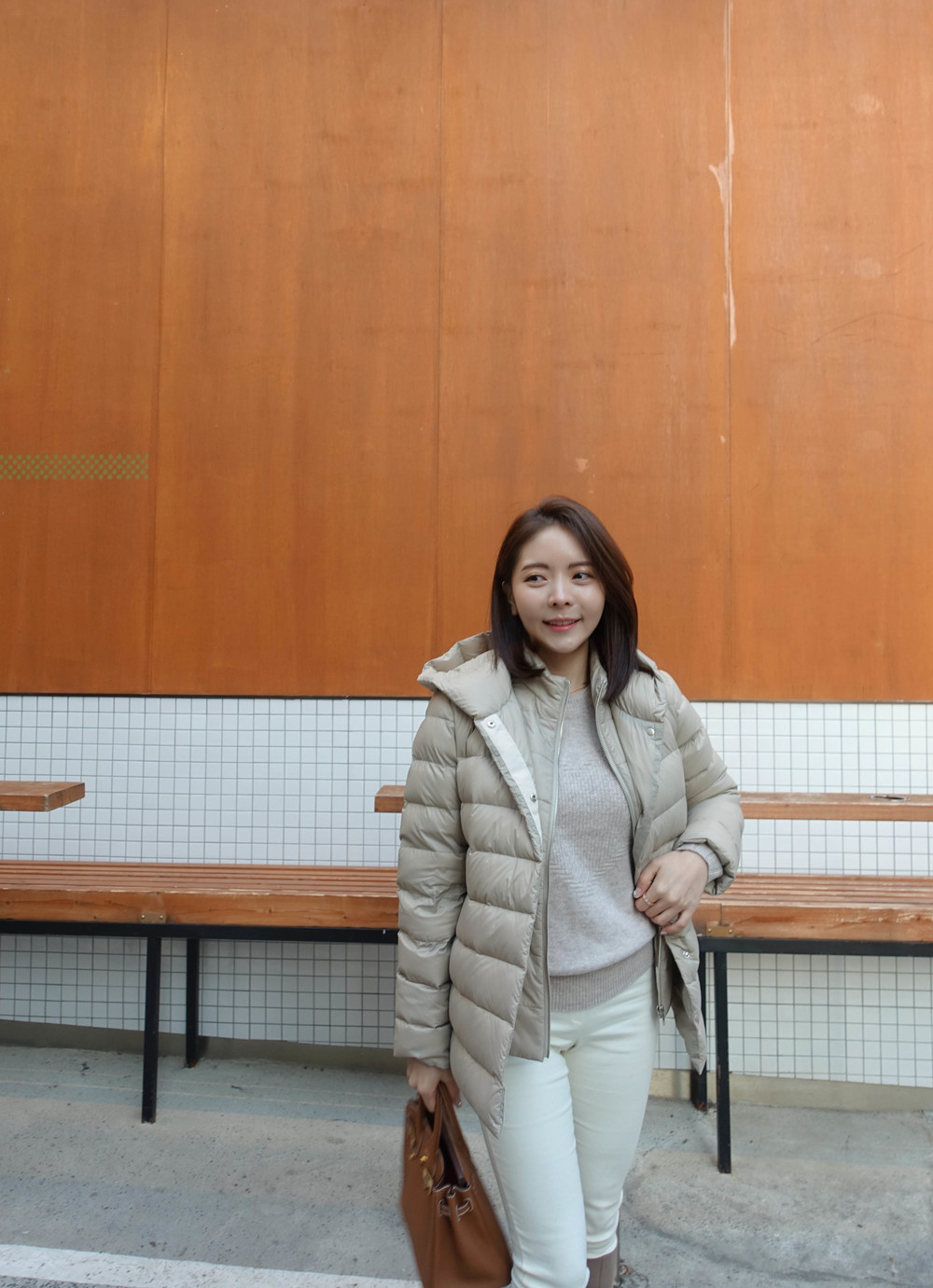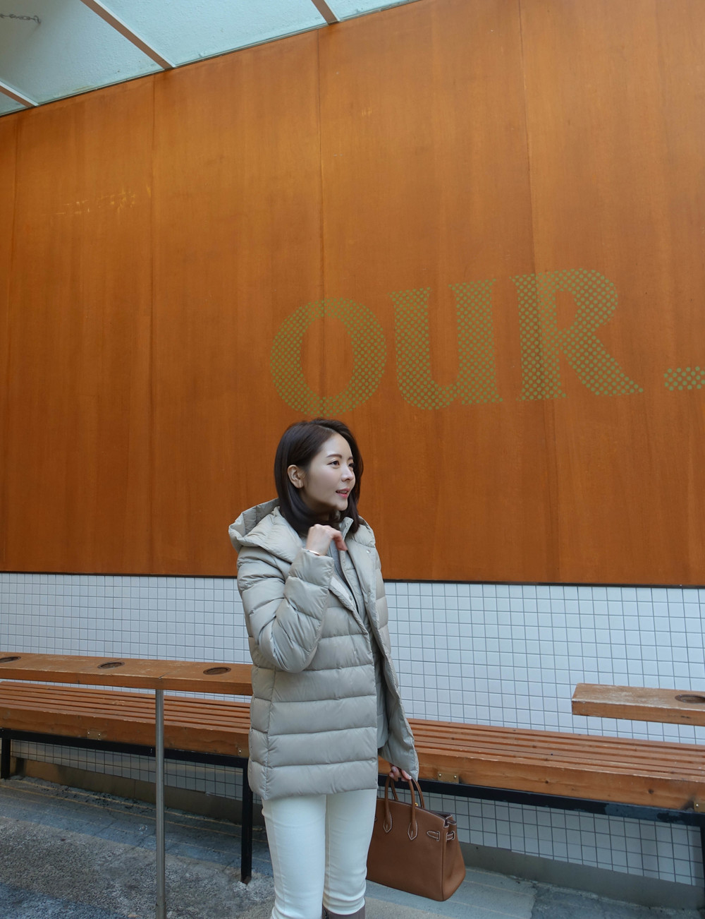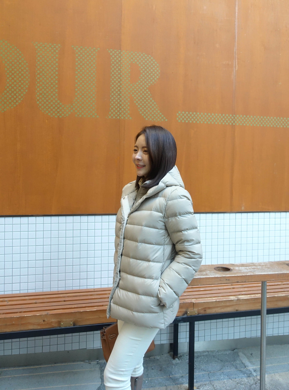 후드가 달려있는 디자인으로 귀여우면서도 데일리용 패딩이예요