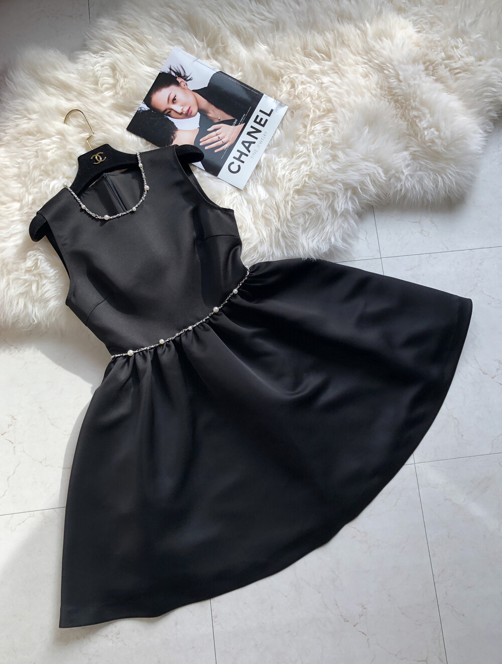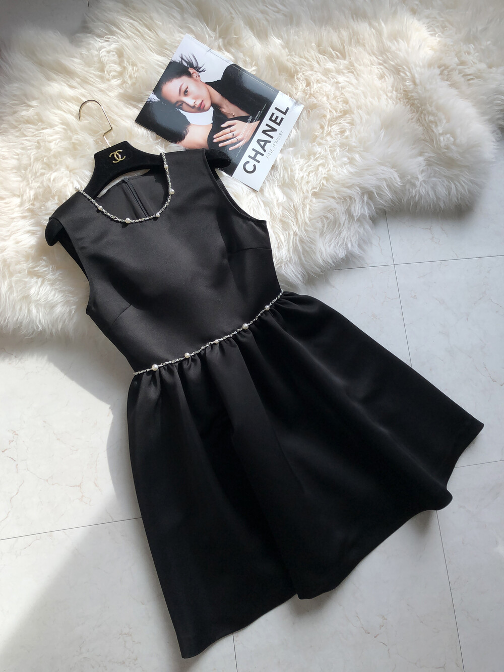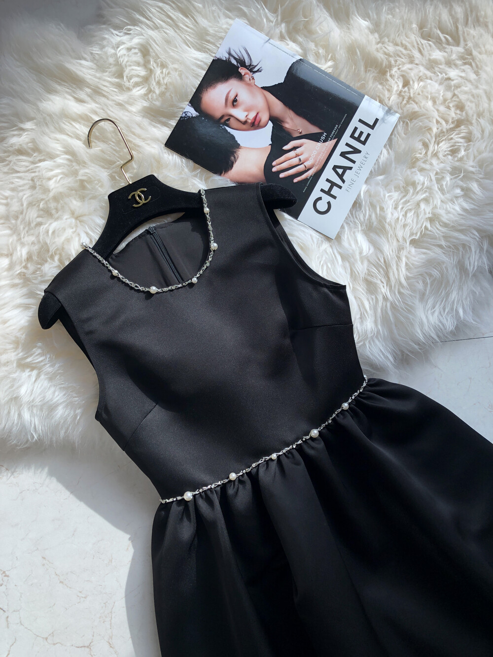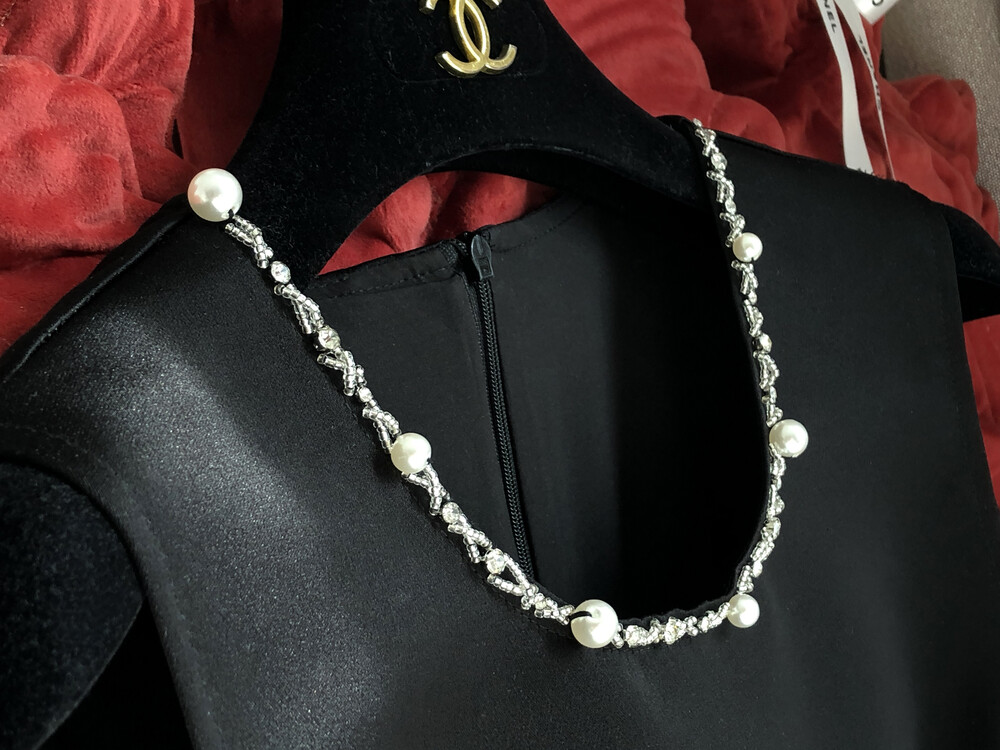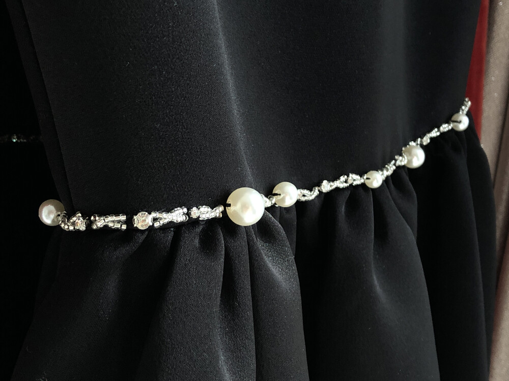 넥라인과 허리라인의 진주가 들어간 장식이 포인트가 있어요
