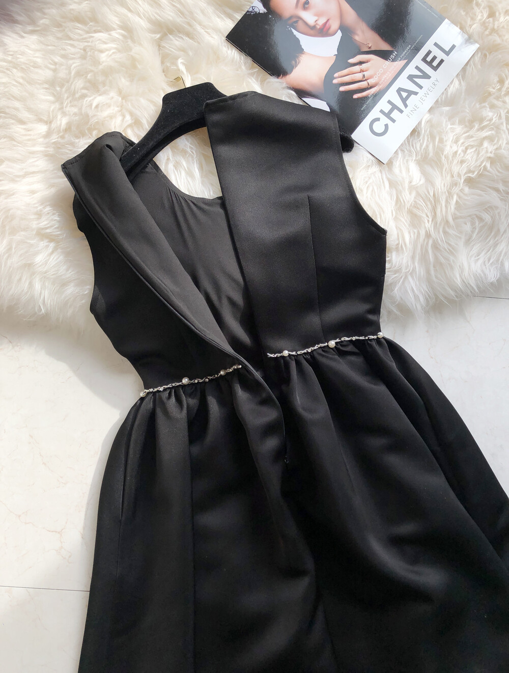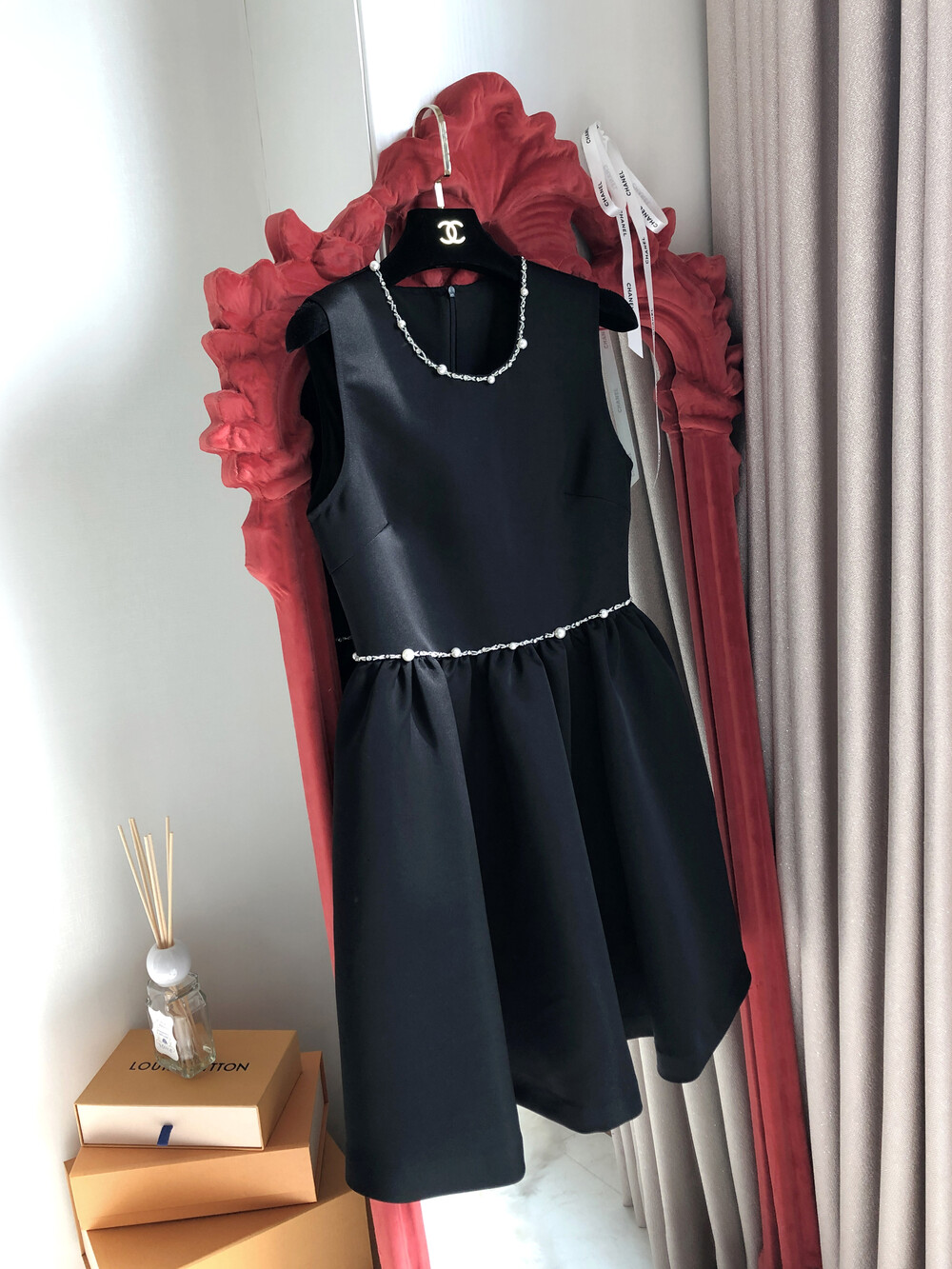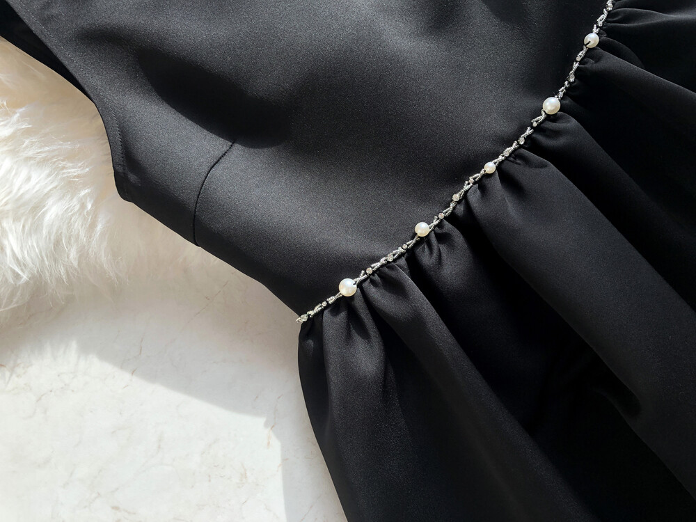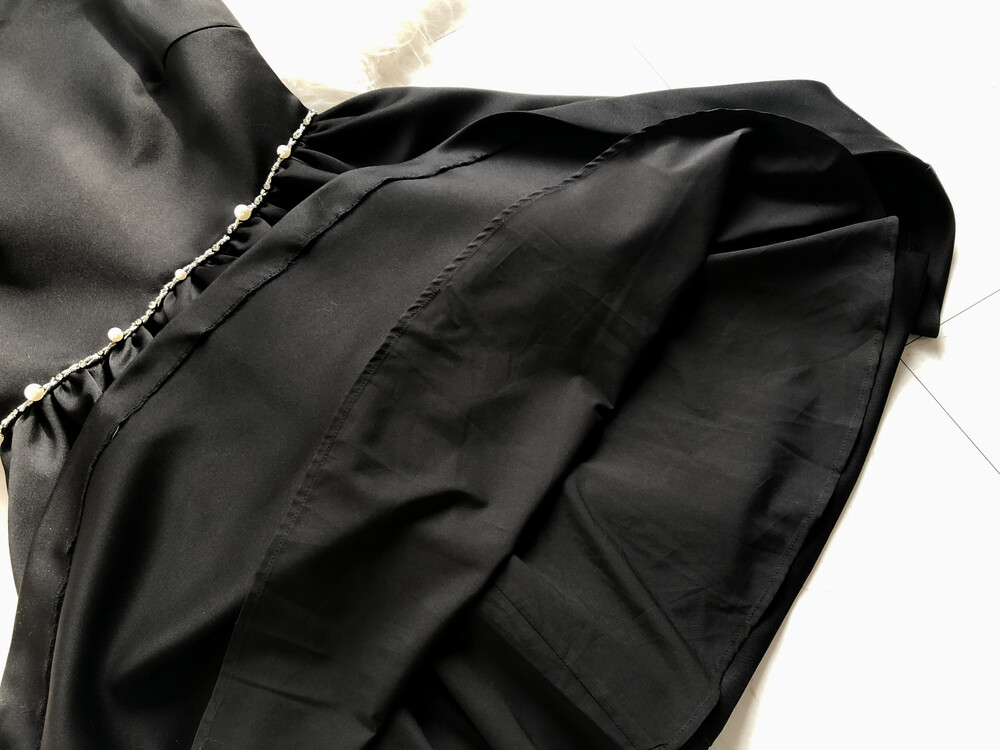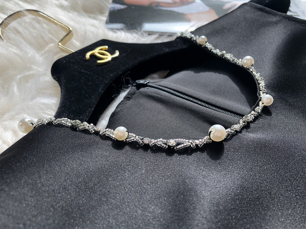 넥라인과 허리라인의 진주가 들어간 장식이 포인트가 있어요