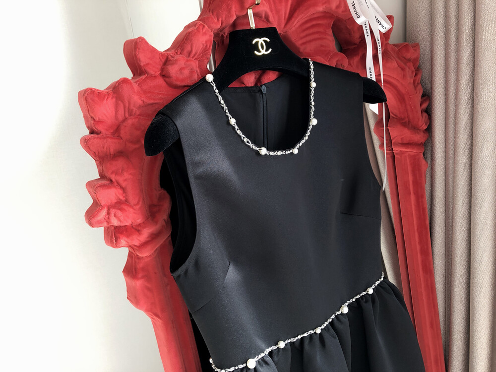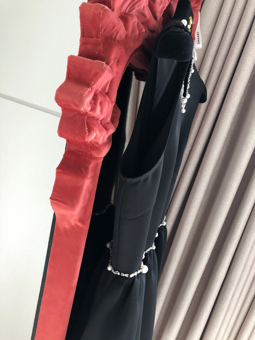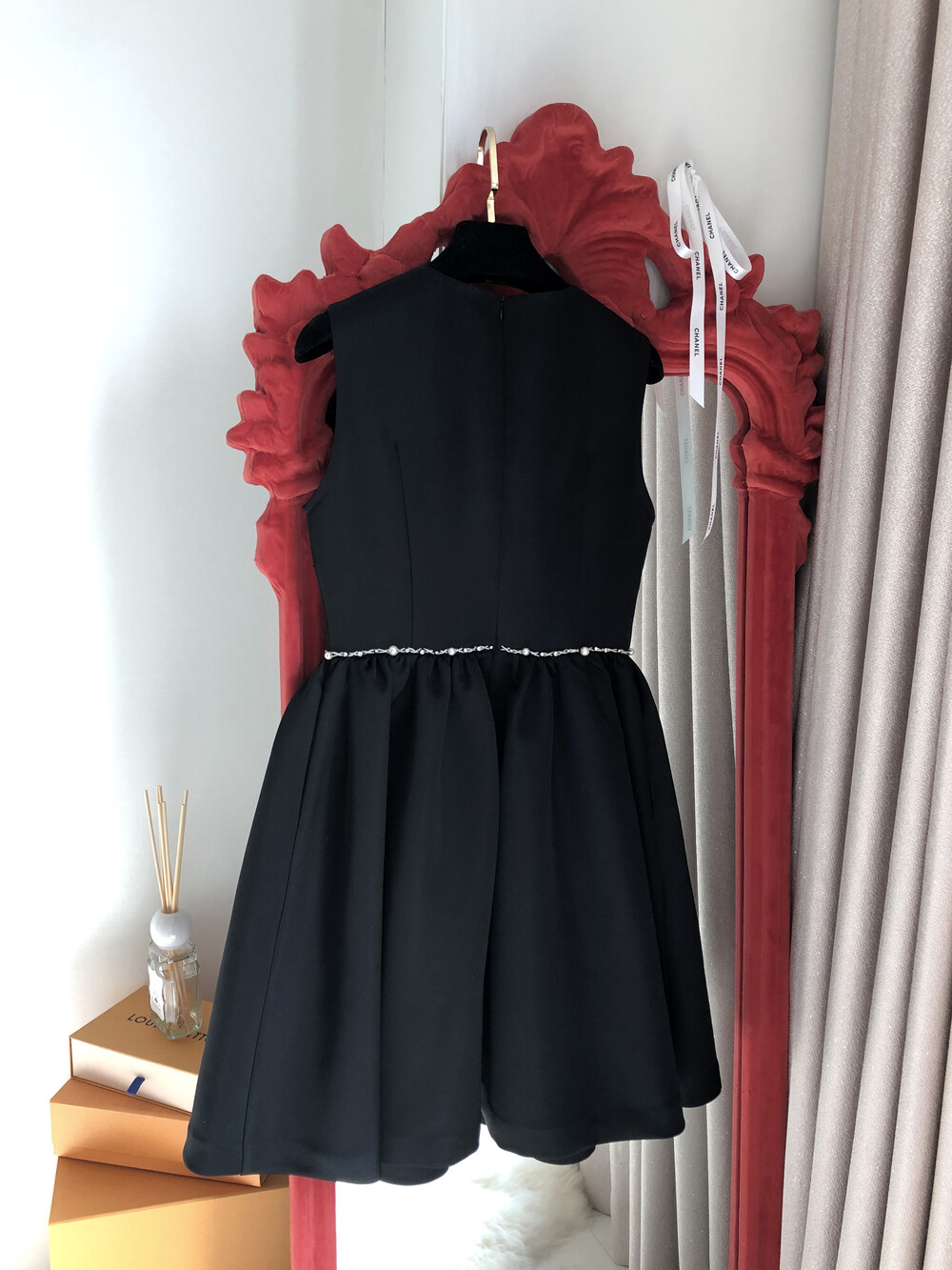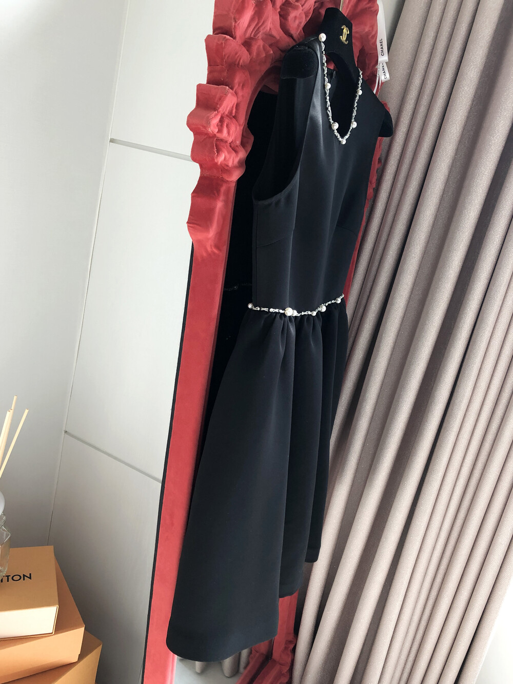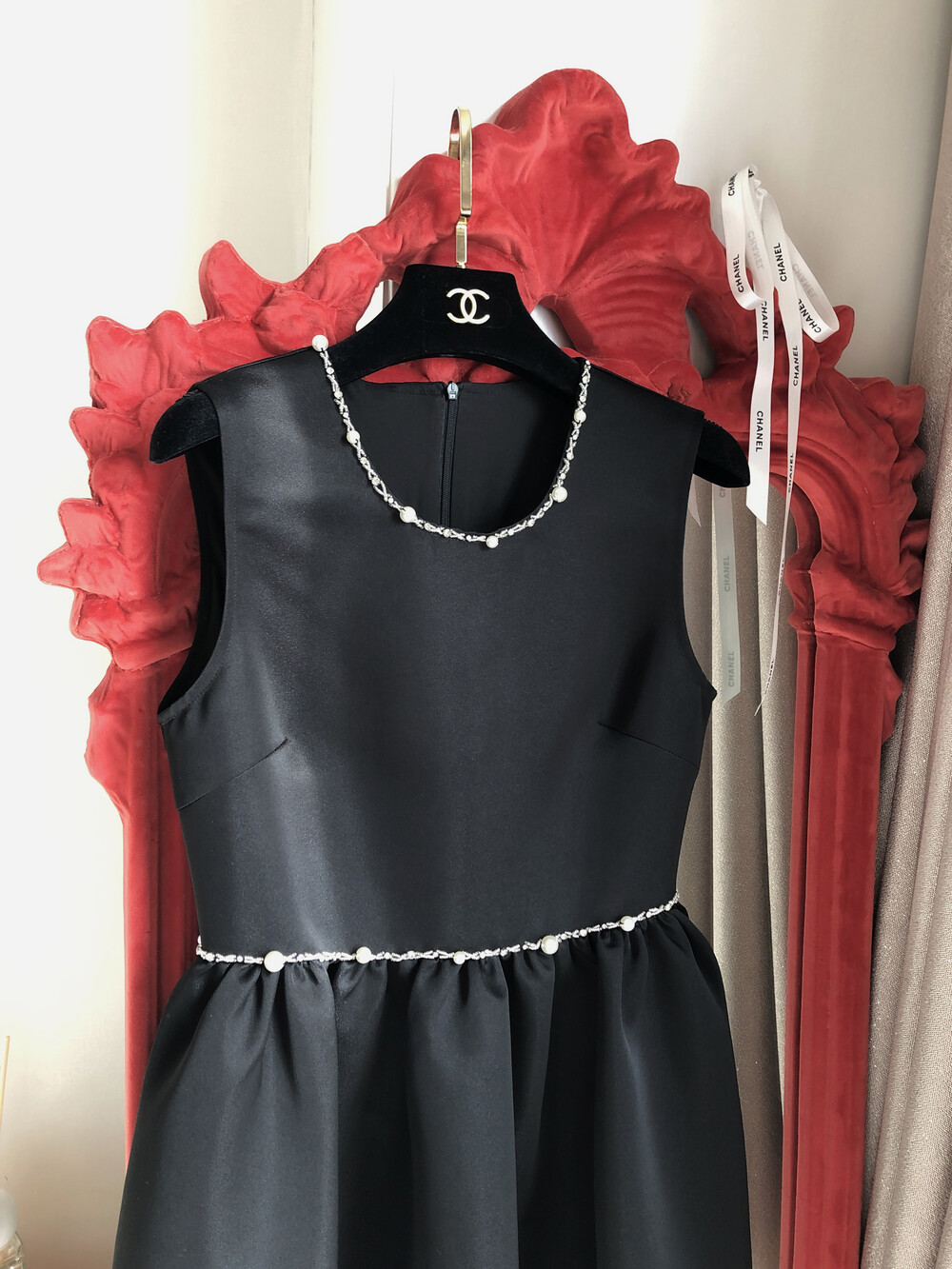 넥라인과 허리라인의 진주가 들어간 장식이 포인트가 있어요